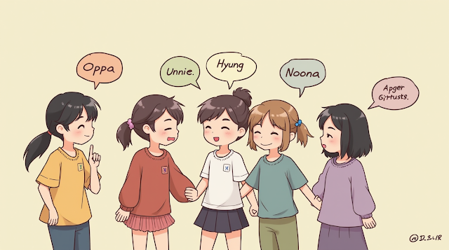 You've definitely heard female characters call their crushes or boyfriends "Oppa" (오빠). This isn't just a cute nickname - it's a term specifically used by women to address older brothers or older male friends/boyfriends. Korean has several relationship-specific terms: